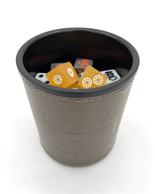 Embossed leatherette dice cup for pouring dice onto the Dice Miner mountain. (Dice not included.)